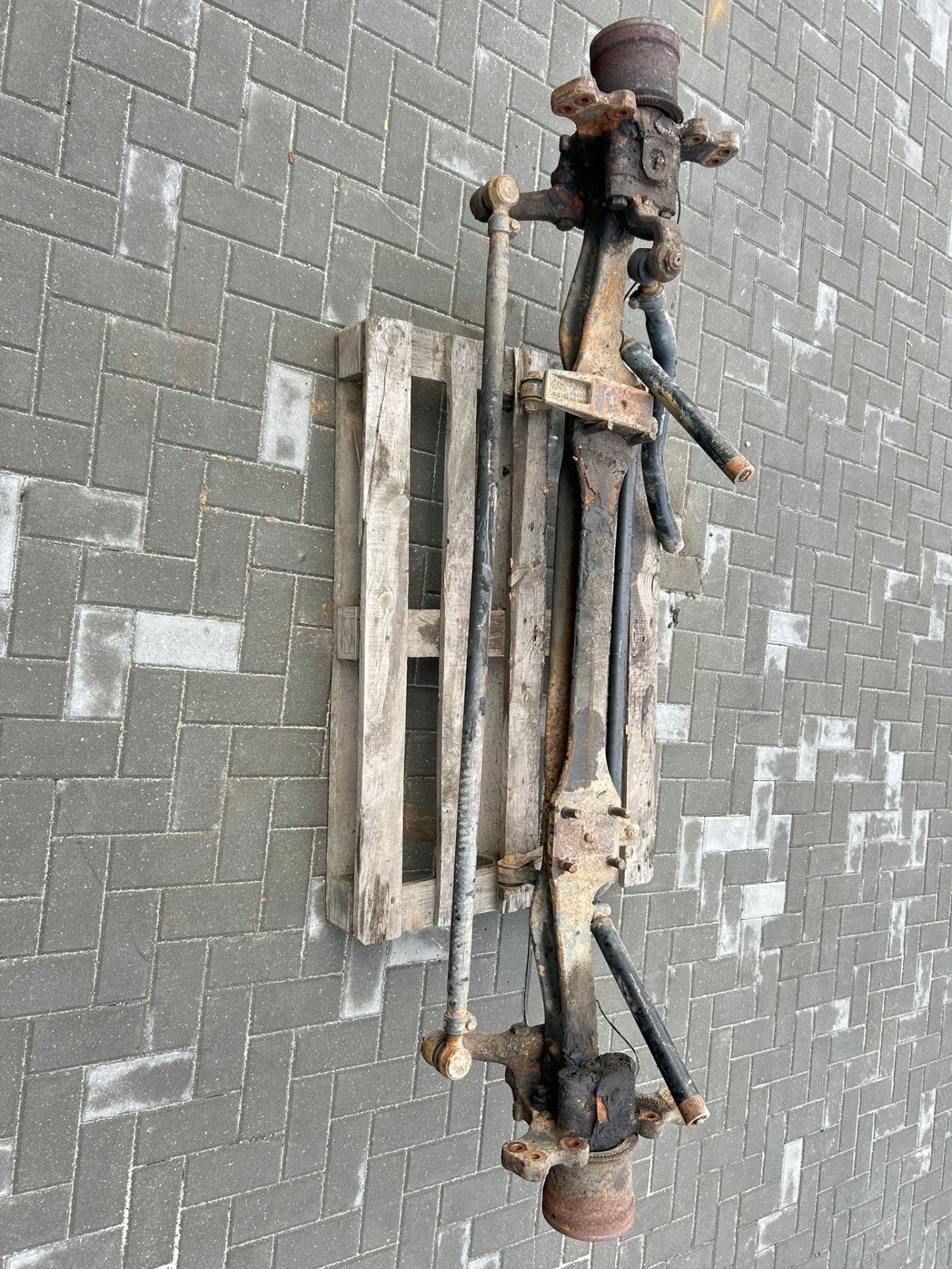 Балка Mercedes Atego с поворотными кулаками и ступицами, как на фото. В хорошем состоянии из Европы. Колесная база R19.5